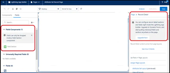 7. Drag fields and sections, and then click "Upgrade Now" from the Record Details settings to launch the Dynamic Forms migration procedure.