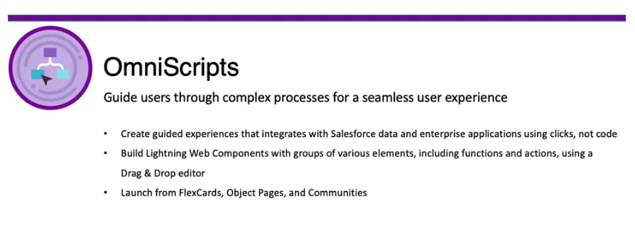 A guided experience that leads consumers through intricate business procedures is called an OmniScript. Application builders can create flawless client experiences across sectors with its drag-and-drop editor.