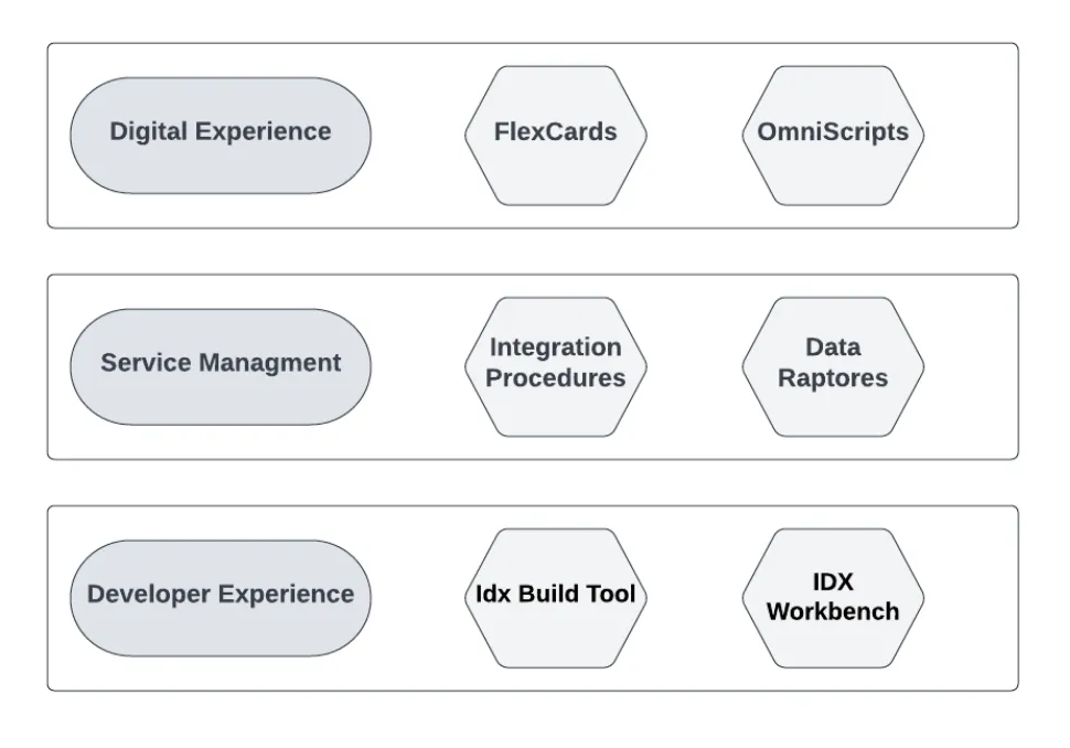 OmniStudio offers a service management layer that extends beyond the user interface and facilitates data interaction and business logic implementation. By merging data from external sources with Salesforce, it dismantles conventional data silos. OmniStudio contains tools called DataRaptors and Integration Procedures, which are similar to Autolaunched Flows but replace custom code and enable quick interfaces with third-party data and APIs. When using Integration Procedures instead of custom Apex code, development time can be greatly decreased.