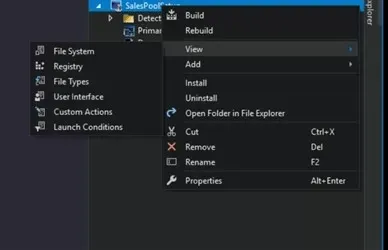 for this, right-click on the setup project and select View. You will get the following options