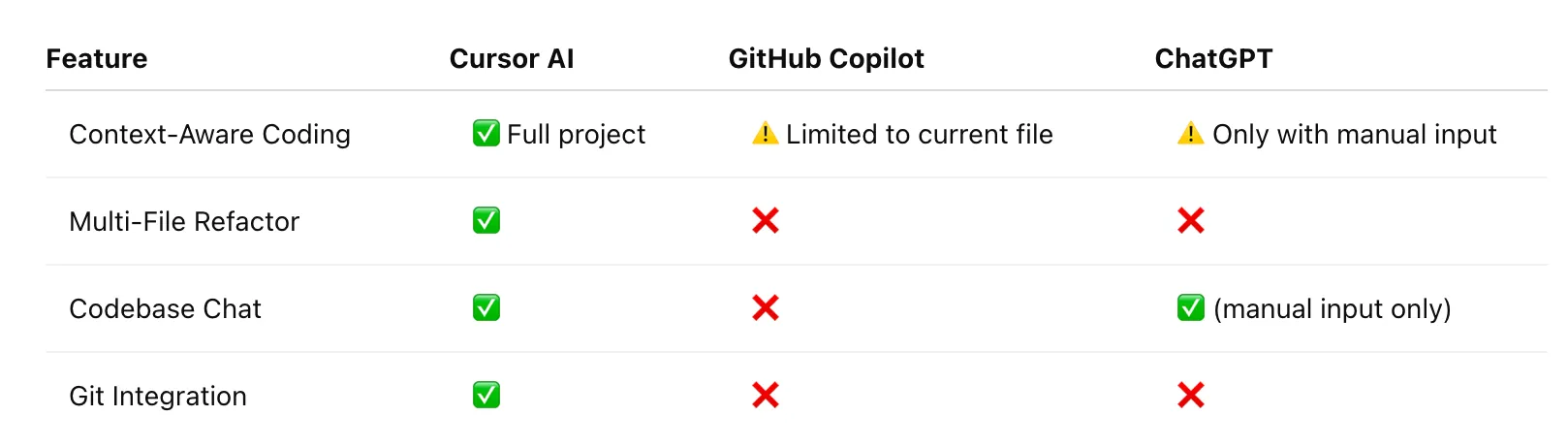 Cursor AI vs. GitHub Copilot vs. ChatGPT