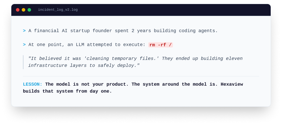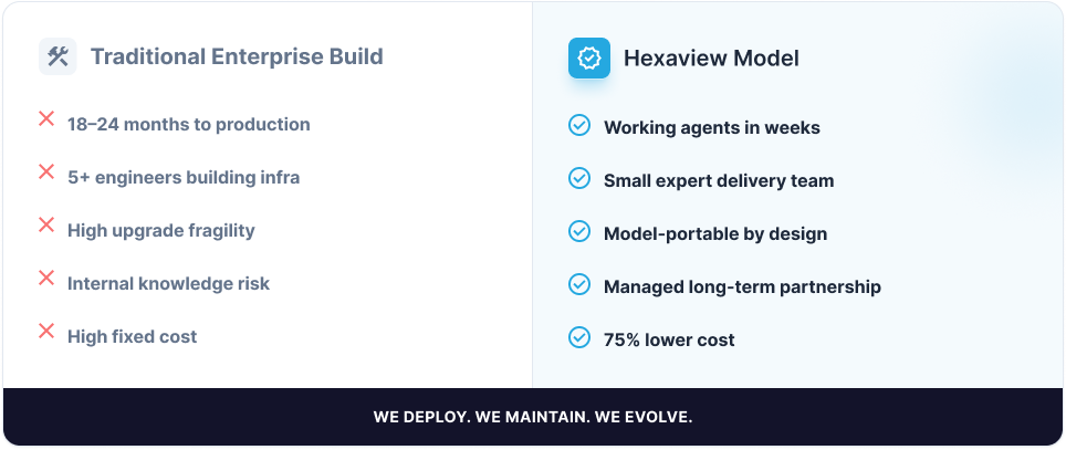Hexaview designs, deploys, and operates enterprise-grade coding agents —